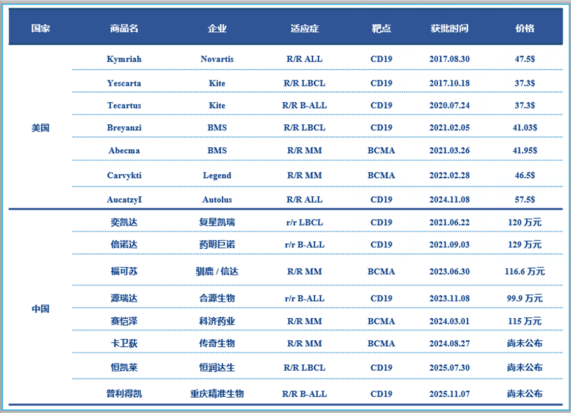 图1. CAR-T产品获批情况(和元整理)