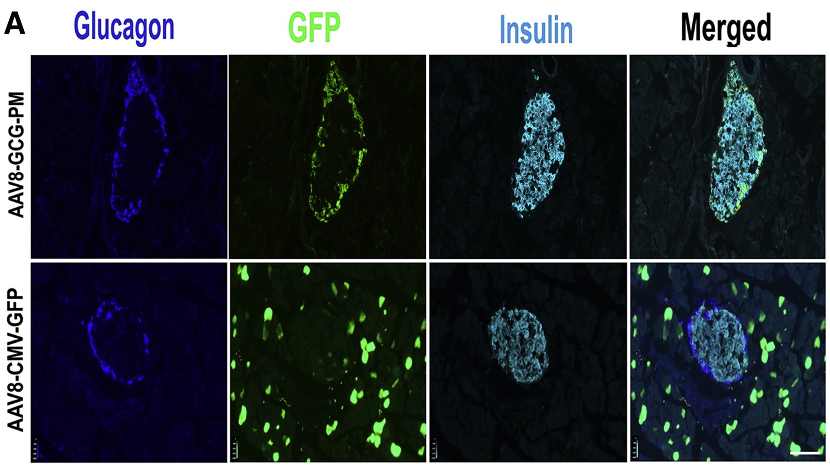 图5 AAV8配合GCG启动子特异性靶向胰岛α细胞