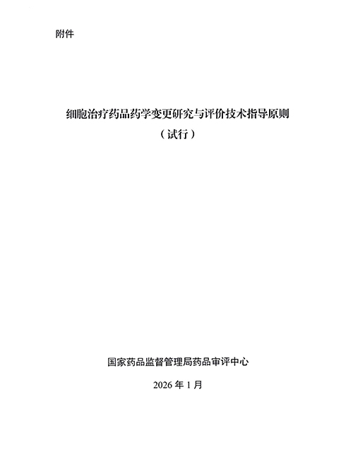 细胞治疗药品药学变更研究与评价技术指导原则(试行)