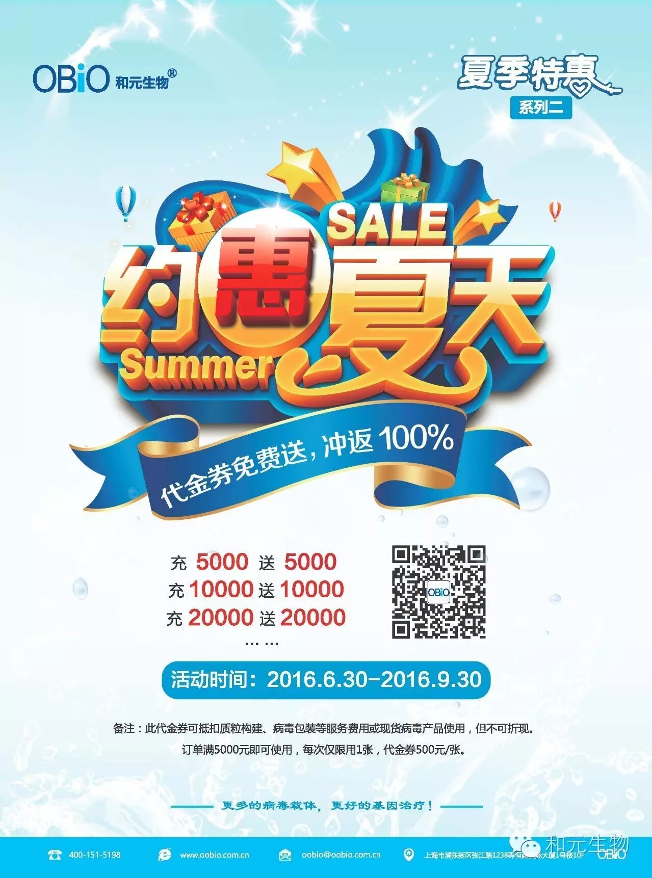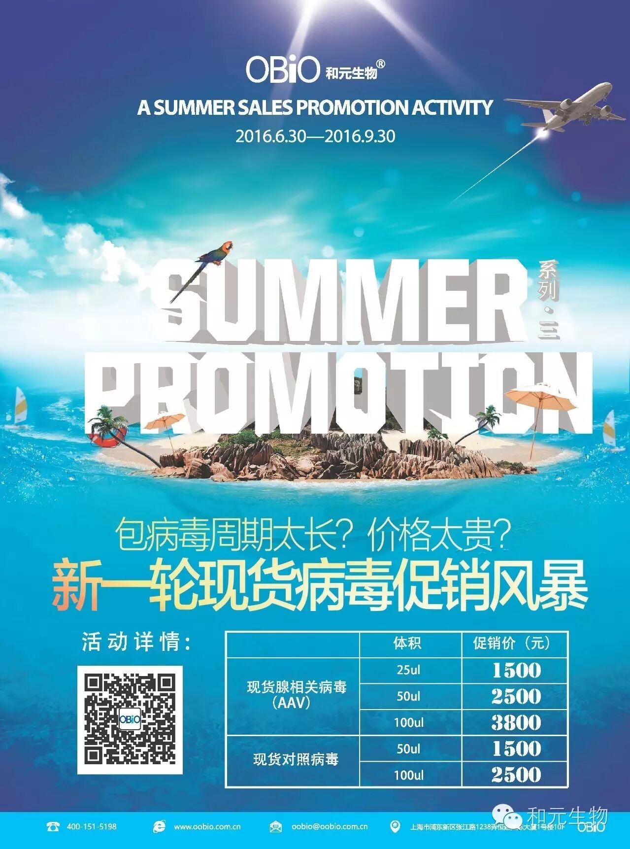 清凉盛夏,冰爽促销。暑期特价,优惠多多。感谢广大客户对和元生物一如既往的支持与关注,从即日起,一大波暑期促销正悄然来袭,给您的夏天带来不一样的清凉体验。活动日期为2016.6.30-2016.9.30。