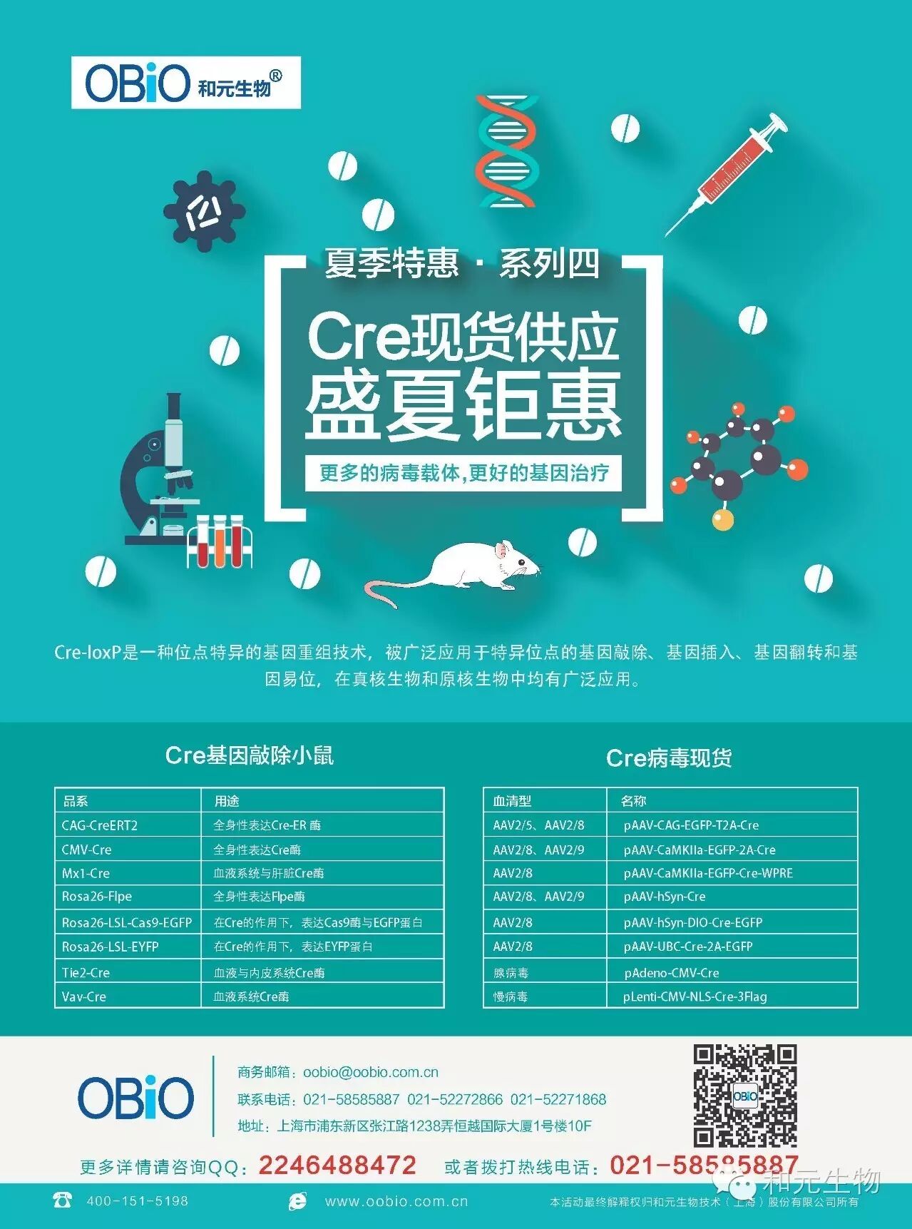 Cre现货供应:公司提供多种Cre现货病毒和Cre现货小鼠,可用于全身性和组织特异性表达。