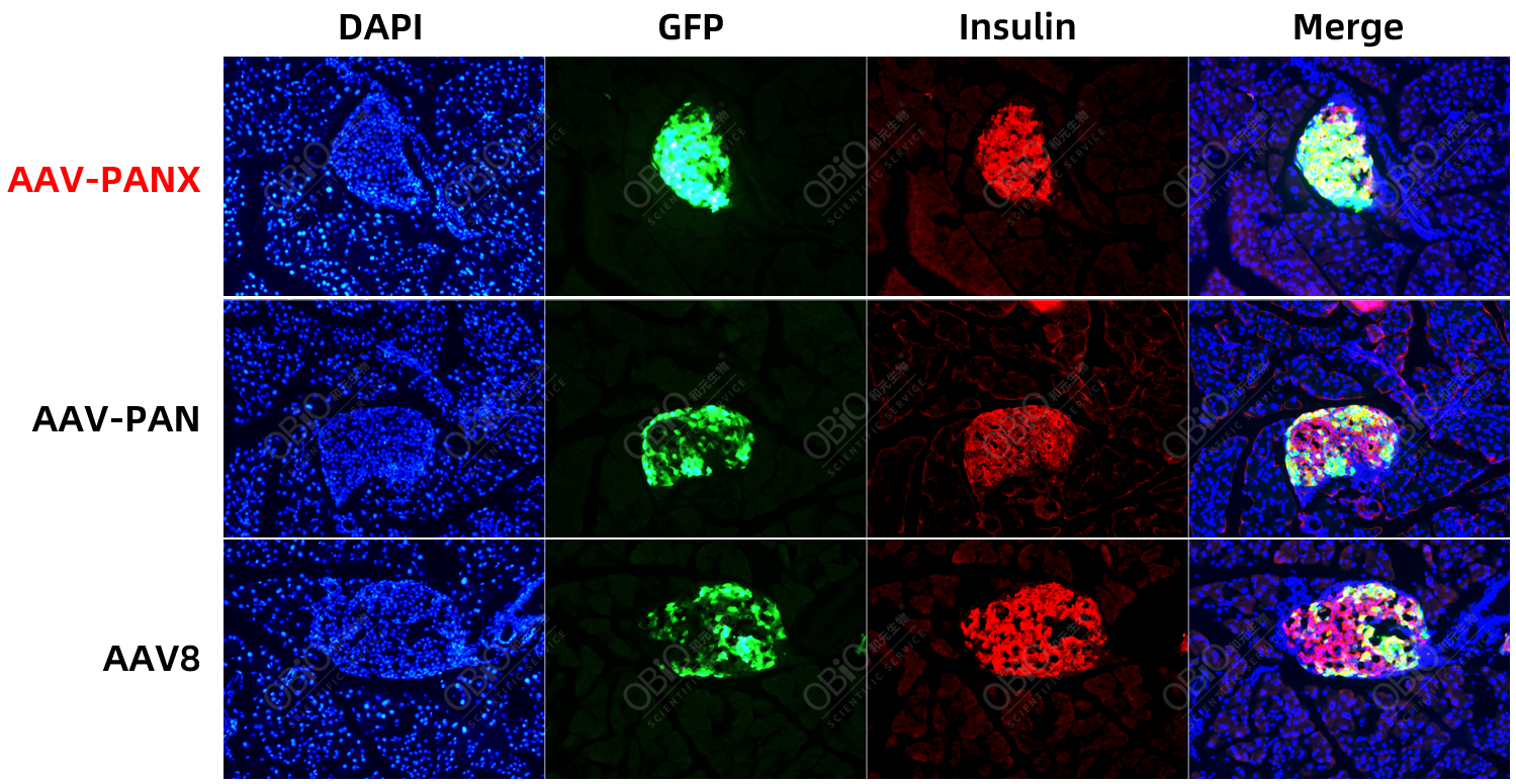 AAV的衣壳蛋白不同,血清型种类多样,具有不同的组织亲嗜性。据文献报道,通过胰管注射AAV8常用于感染胰腺。此外,AAV-PAN血清型可以通过腹腔注射实现特异性转导胰腺,感染效率相较于AAV8有一定程度的提升。