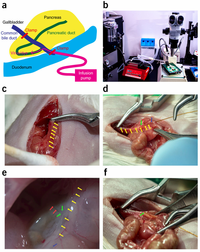 胰管注射是一种用于谱系追踪、基因导入和细胞系特异性靶向重要技术。AAV8具有比较广泛的组织亲嗜性,因此利用AAV8来感染胰腺时,通常需要配合转导效率高的注射方式。胰管注射就是一种常用的选择。